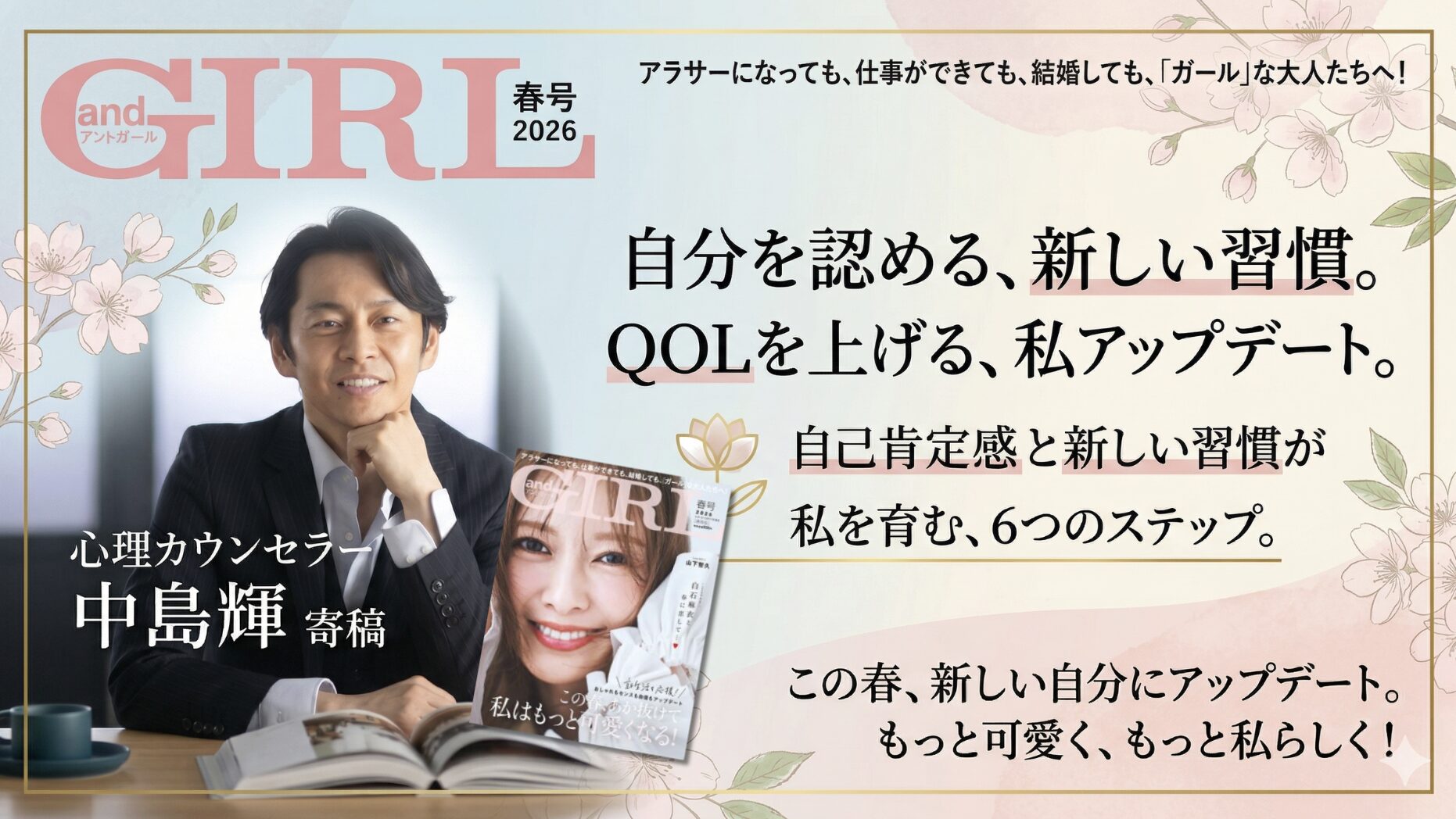 【掲載告知】中島輝が『andGIRL 2026年春号』に特別寄稿!「QOLを上げる、私アップデート。」の新しい習慣。